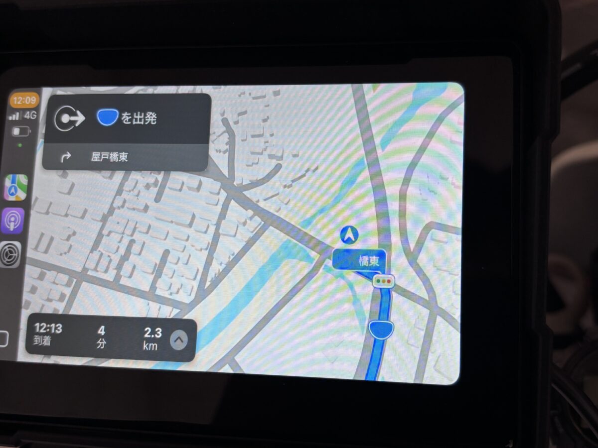画面には5インチの高輝度(800Nit)・高解像度(1024×600)のIPS液晶を採用。さらにバイクでの使用を想定してヒサシが設けられており、太陽光下でも高い視認性を維持する。