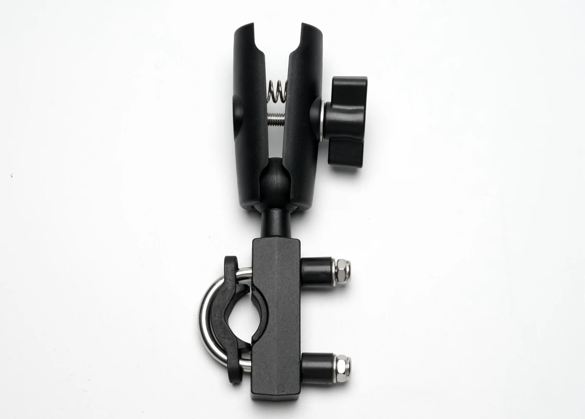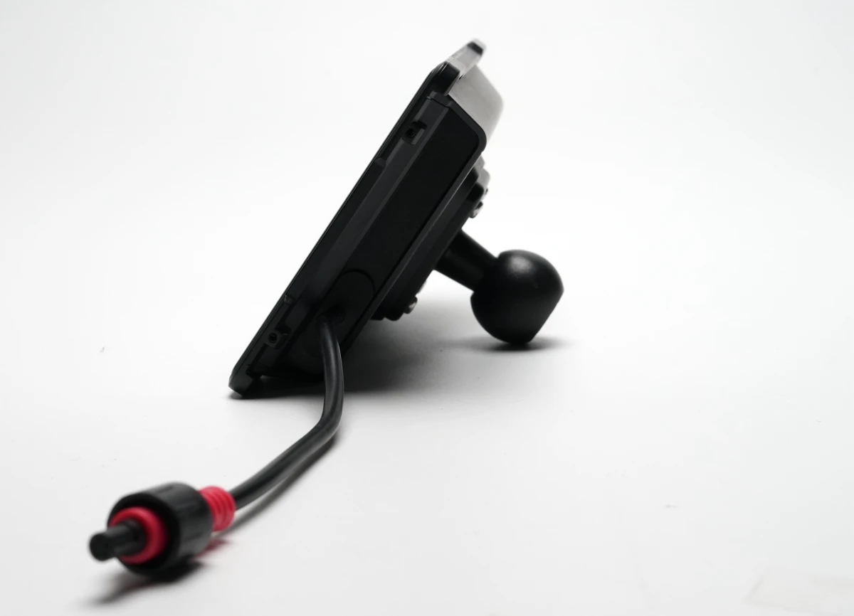 先に説明したようにSRD 5 Slimにはブラケットと2種類の給電ケーブルが同梱されているので、まずはブラケットをハンドルに取り付けた上で本体を載せて、から〜の、お次は車体バッテリーもしくはUSBポートに給電ケーブルを繋いで、から〜の、最後に本体側の電源コードに接続するだけで取り付け完了となります!