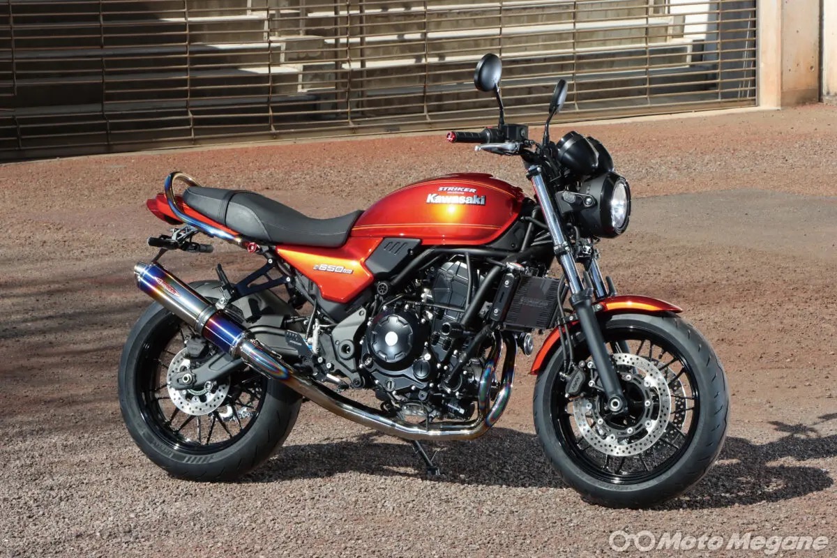 ストライカーブランドならではの「装着したいと思わせるカッコいいデザインの製品づくり」とともに性能面でもしっかりとメリットを持つカスタムパーツ群は、HAYABUSAやZ900RSを中心にマフラーやステップキットにハンドルキット、カーボン外装パーツなど幅広いラインナップを誇る。