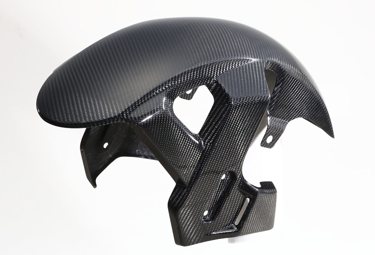 こちらも現在開発中の新製品であるドライカーボン製のHayabusa用フロントフェンダー。異彩を放つドライカーボンの質感でウイングレットと併せて装着したくなる&フロントマスクがカッコよく引き締まること間違いナシ!!