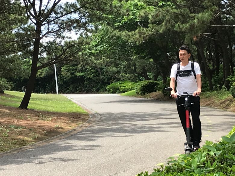 幕張の大通りを避けて交通量の落ち着いた道路で試したが、操作方法は簡単ですぐに慣れることができたし、なにより心地よい風を感じられて爽快感があった。