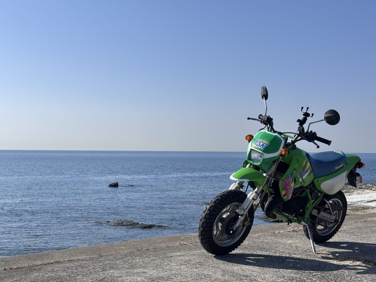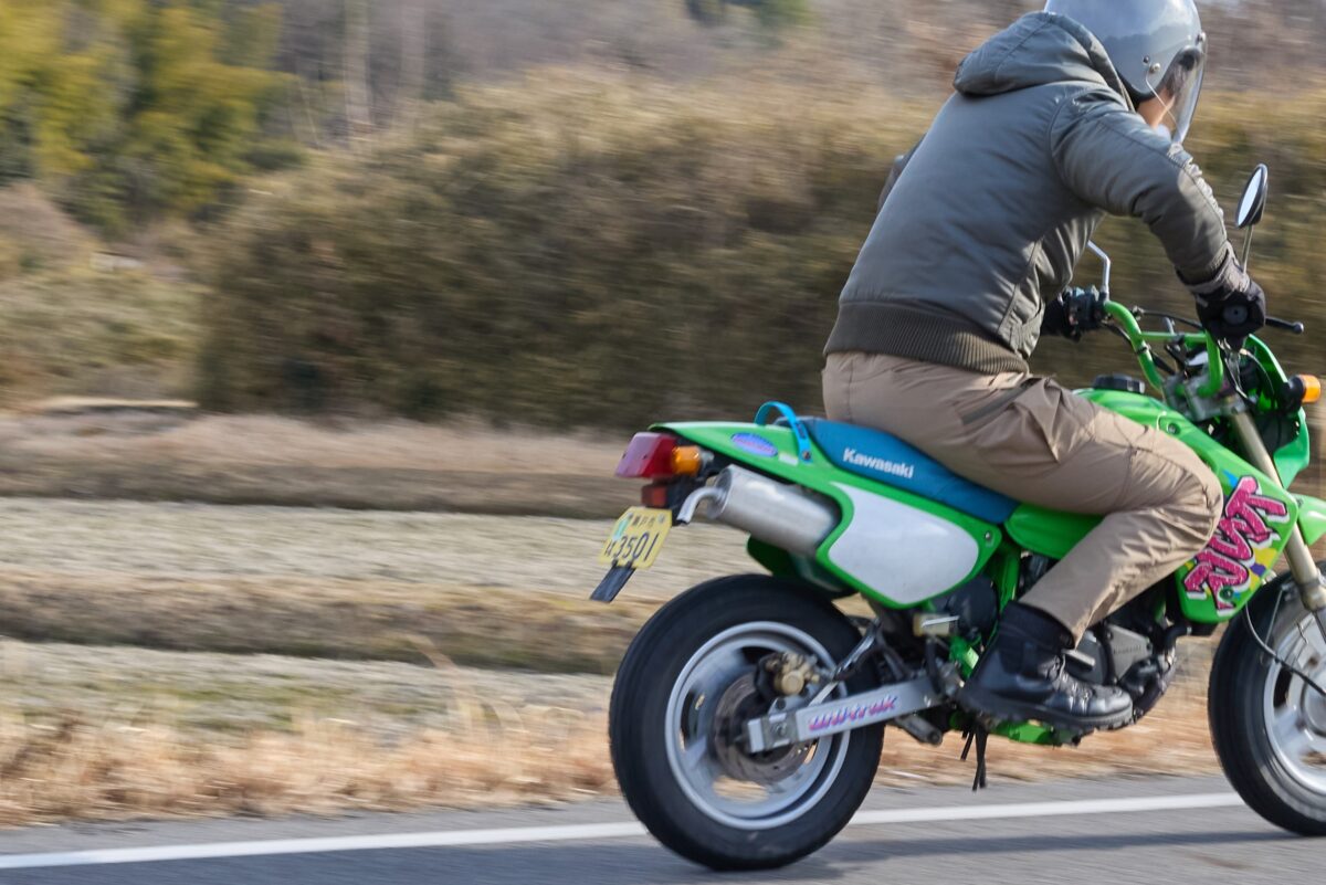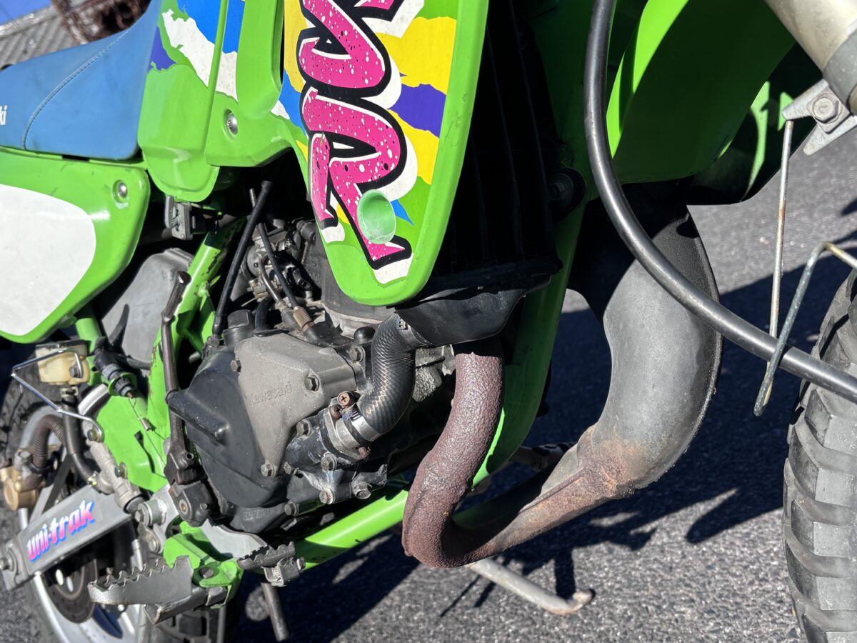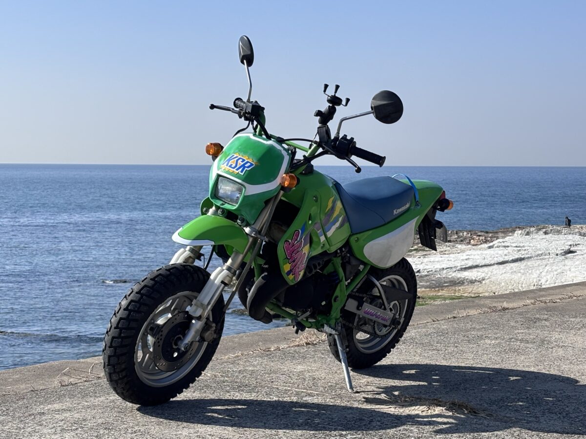 解体屋さんから15万円で購入したカワサキ・KSR-Ⅱ(79㏄)。94年式で走行距離は約6,000㎞だ。キャブをオーバーホールしたところ絶好調になり、とにかく運転が楽しい! が、つねに高回転を維持しないと2ストらしい加速は味わえない。