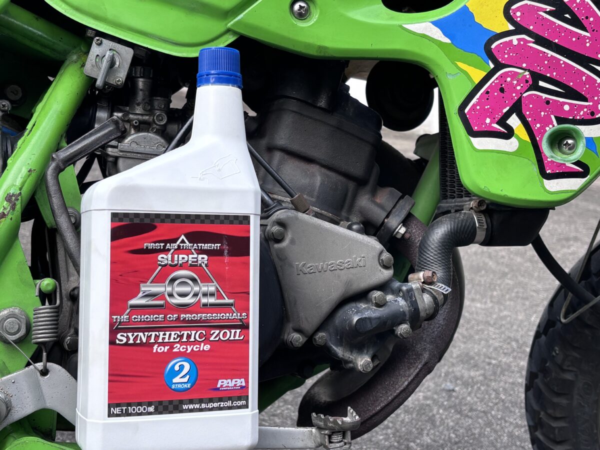 4スト車しか知らないライダー(筆者)からすると「こんなに回してエンジンの寿命は縮まないのか?」と不安になってしまう。そしてさらなる問題が、シリンダーが廃盤になっていること。シリンダーをボーリングしてオーバーサイズピストンを合わせれば修理可能だが、できることなら避けたい重整備である。シンセティックゾイル for 2cycleを使うことで、どれだけのエンジン保護が期待ができるのだろうか。