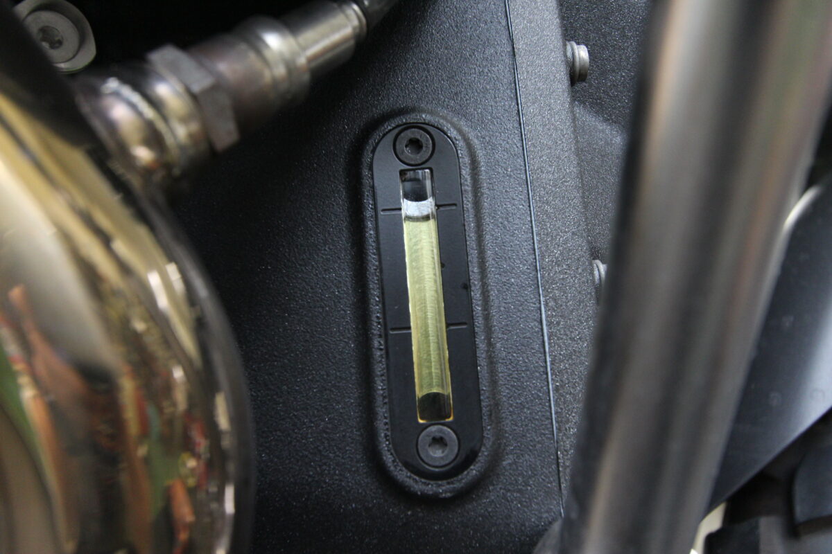 規定量のオイルとスーパーゾイルを注入し、最後にオイル点検窓で、オイルレベルをしっかりと確認したら完了だ。