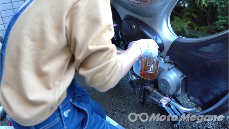 リトルカブの場合、交換時のオイル量が600mlなので