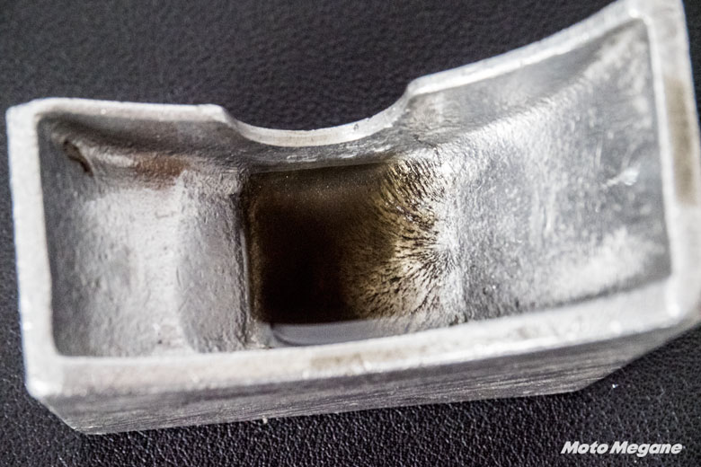 摩擦により金属表面にダメージを受けた状態で使ってもスーパーゾイルは効果があることがわかる。