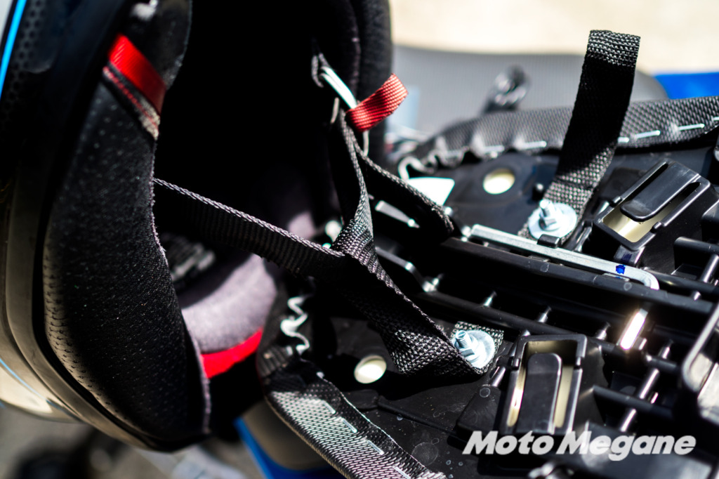 シート裏には輪っかが二つ配されていてヘルメットの顎ひもをかけておくことができる。