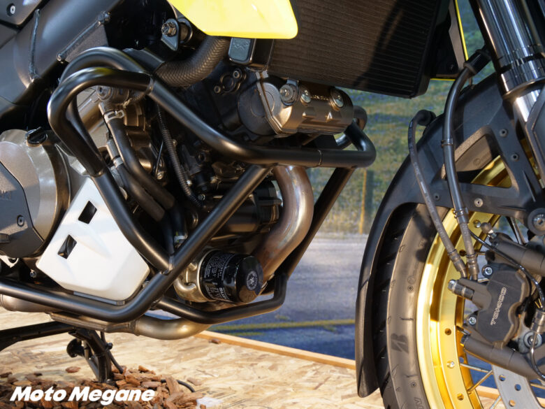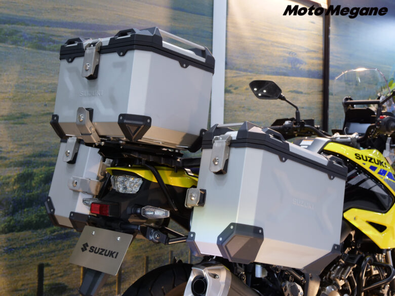 Vストロームシリーズの頂点となるVストローム1050XTは、大きい車体とは裏腹に扱いやすい動力性能と普段のツーリングがもっと楽しくなる快適装備を多数搭載しており、オプションとなるトップ・サイドケースまで装着した展示車両なら、このままどこまでも一緒に冒険できてしまいそうだ。
