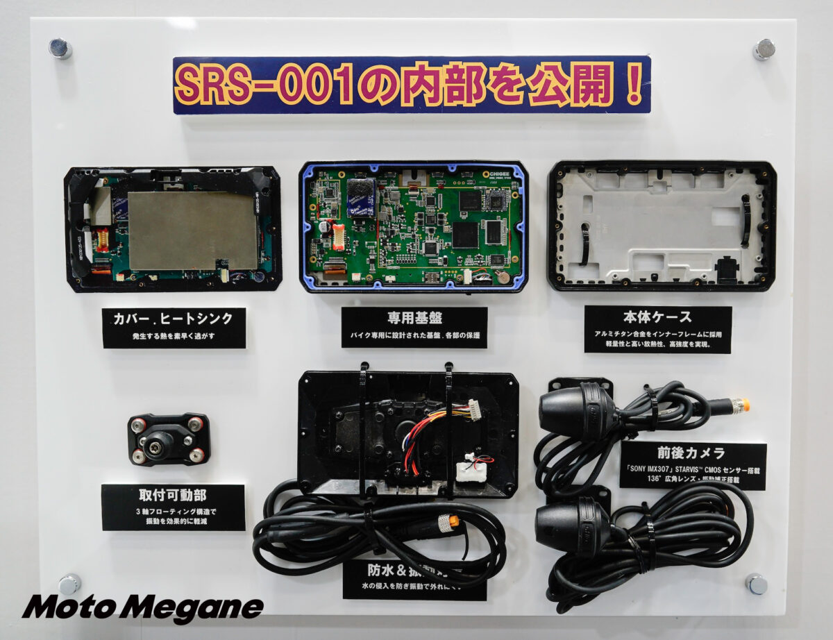 ブースにはSRS-001 スマートライドモニターAIO-5 Liteも展示され、バイク専用設計という同製品の内部構造も公開されていたとあって、食い入るように眺める来場者の姿も多かった。
