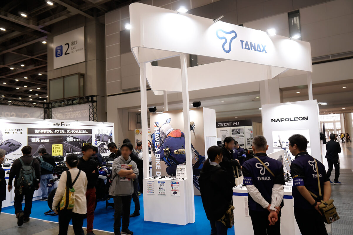 2026年東京モーターサイクルショーのタナックスブースでは、さらにタフ&使いやすさが向上した新作バッグ群に加え、小型シートの車両でも安定したバッグの取付が可能なライザーベースやバッグの盗難防止に効果的なバッグ用ワイヤーロック、高性能スマートライドモニターや小型・軽量なポータブルドライブレコーダー、洗練されたデザインと機能性を両立するナポレオンミラーの展示など、バイクライフを今まで以上に便利で豊かにしてくれる製品たちが来場客を楽しませていた。