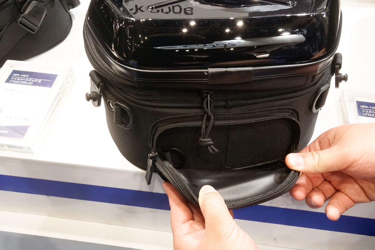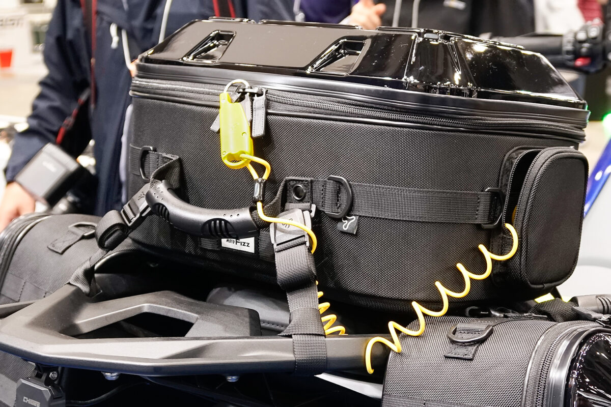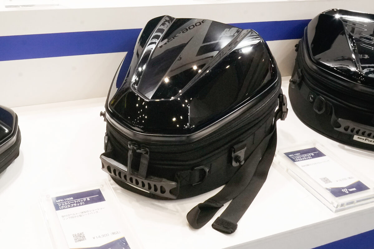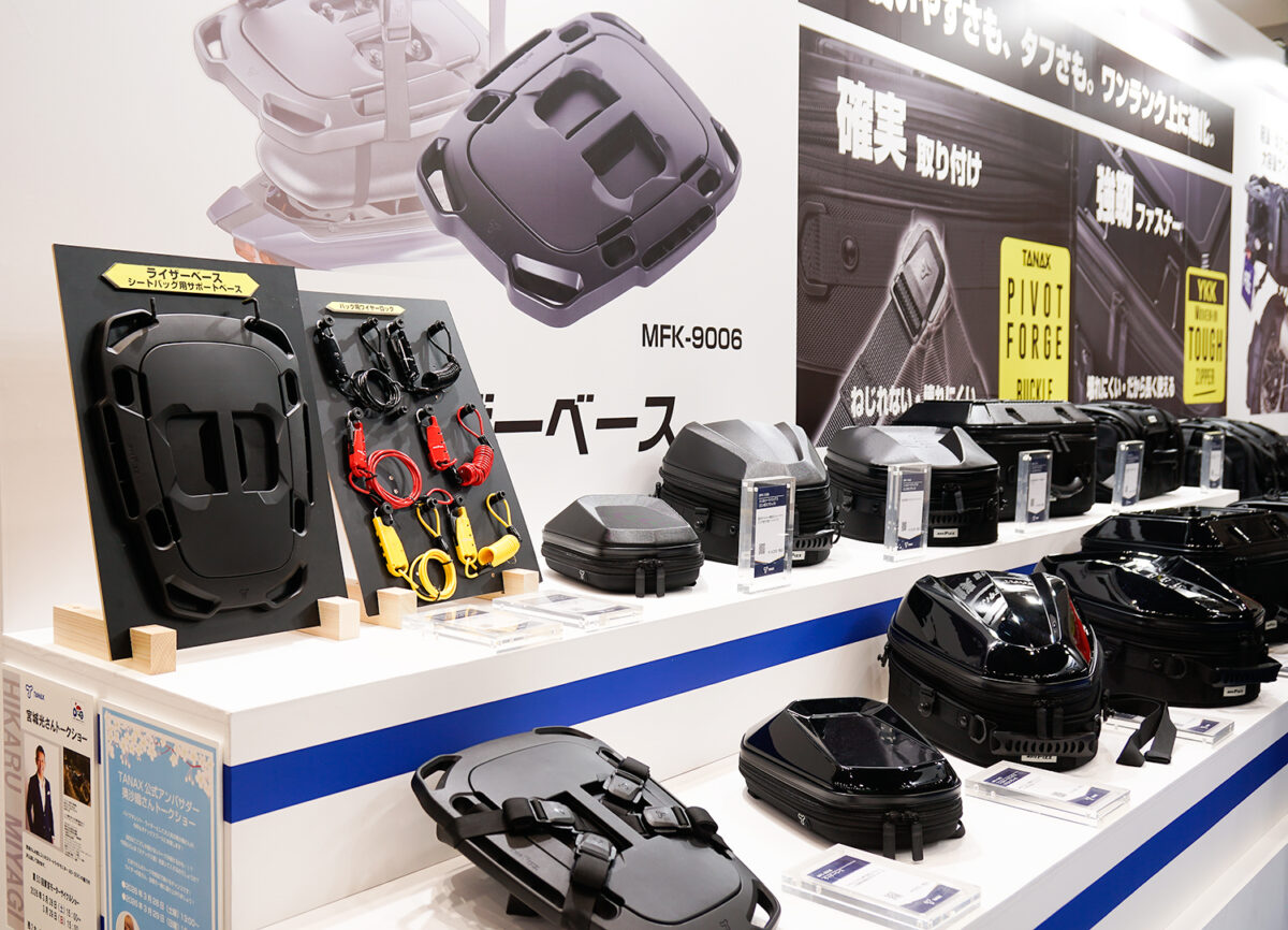 タナックス製品といえば、高品質で高機能かつライダーのかゆいところに手が届く高い利便性もあわせ持つ製品作りで定評があり、今回展示された新作シートバッグやシェルバッグなどもそのひとつ。