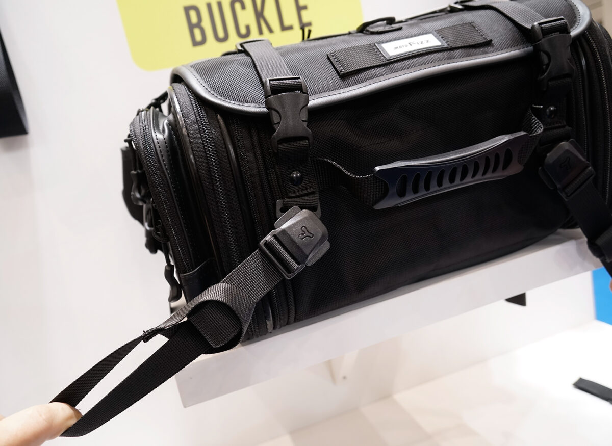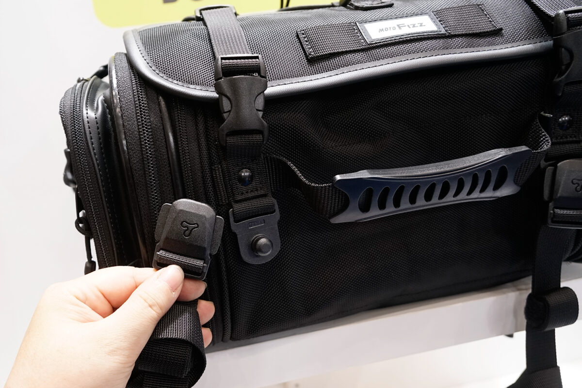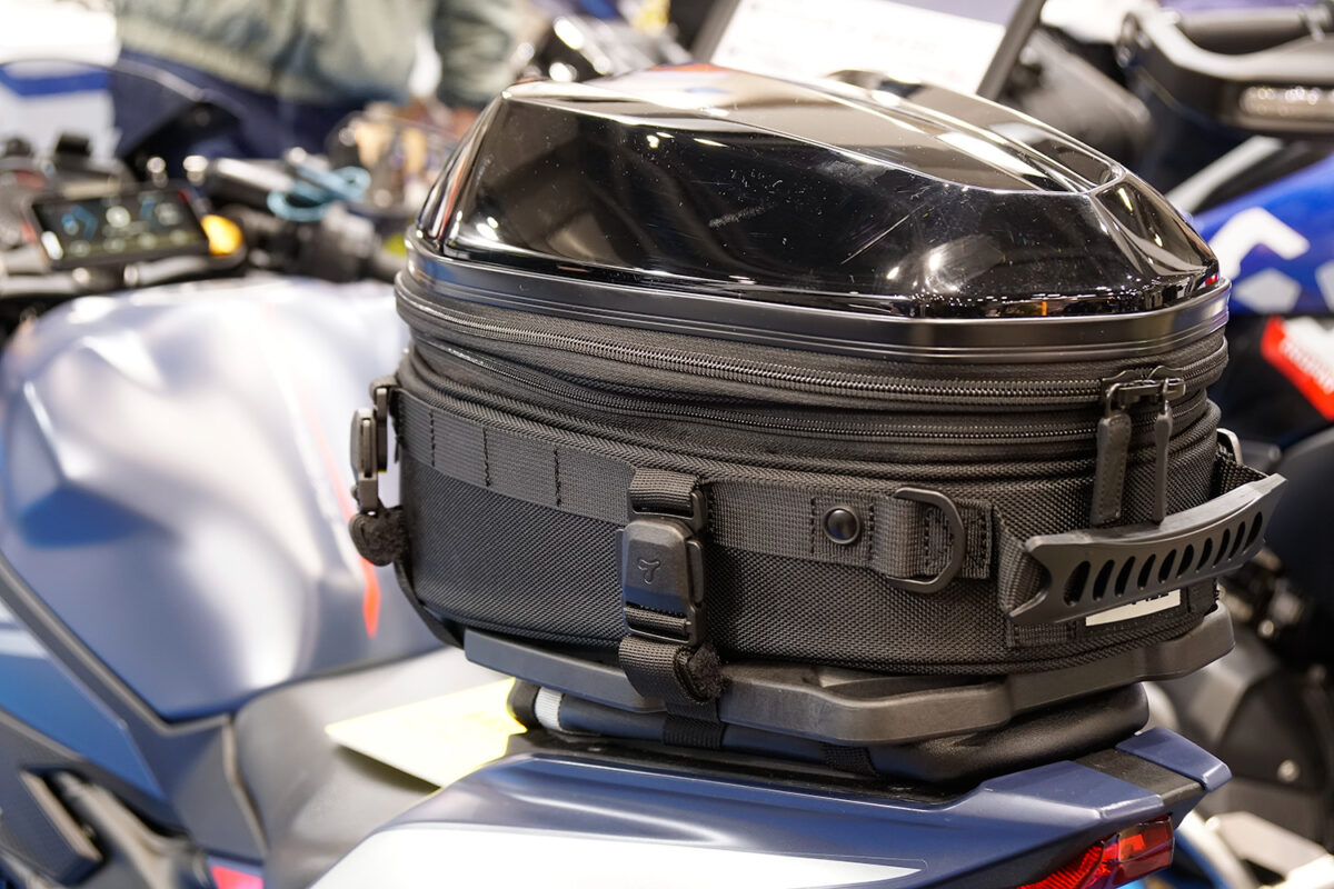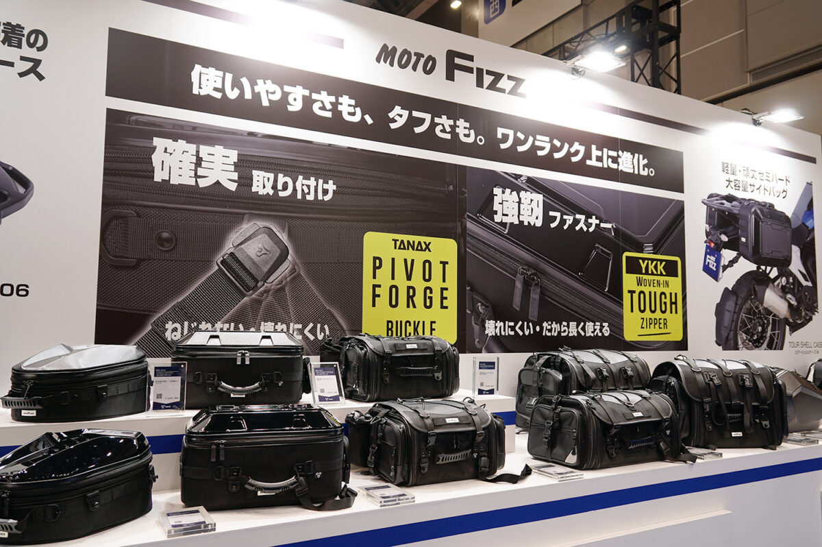 タナックス製品といえば、高品質で高機能かつライダーのかゆいところに手が届く高い利便性もあわせ持つ製品作りで定評があり、今回展示された新作シートバッグやシェルバッグなどもそのひとつ。