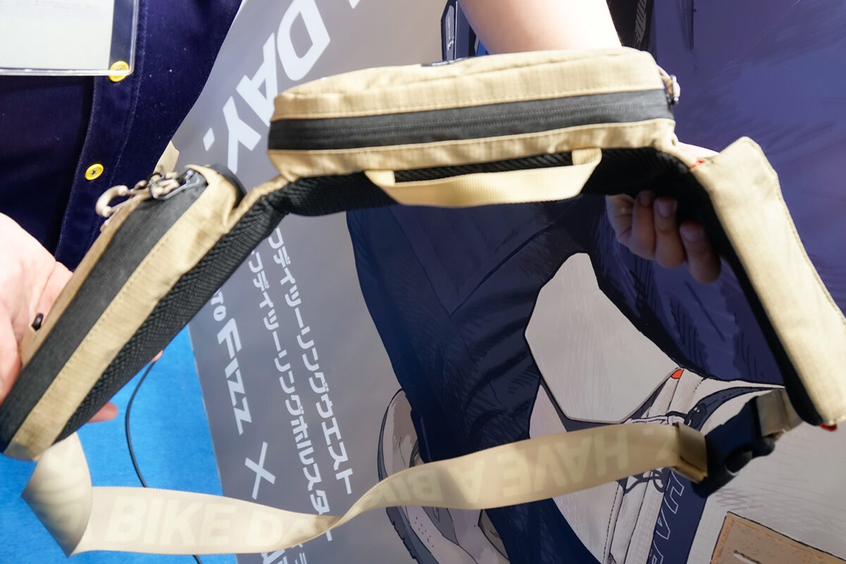 ストレスなく気の向くままに楽しみたいライダーのために作られたというこのバッグは、ライダーとのトータルバランスを考慮して敢えて薄くしたウエストバッグの厚みの妙もさることながら、本来ホルスターバッグにあるウエストベルトの代わりにストッパーベルトをポケットに差し込むだけという仕様は、ただ脱着が楽なだけでなく、乙女ライダーのトイレ時にかなり重宝する画期的な仕組みで本気で感動した!