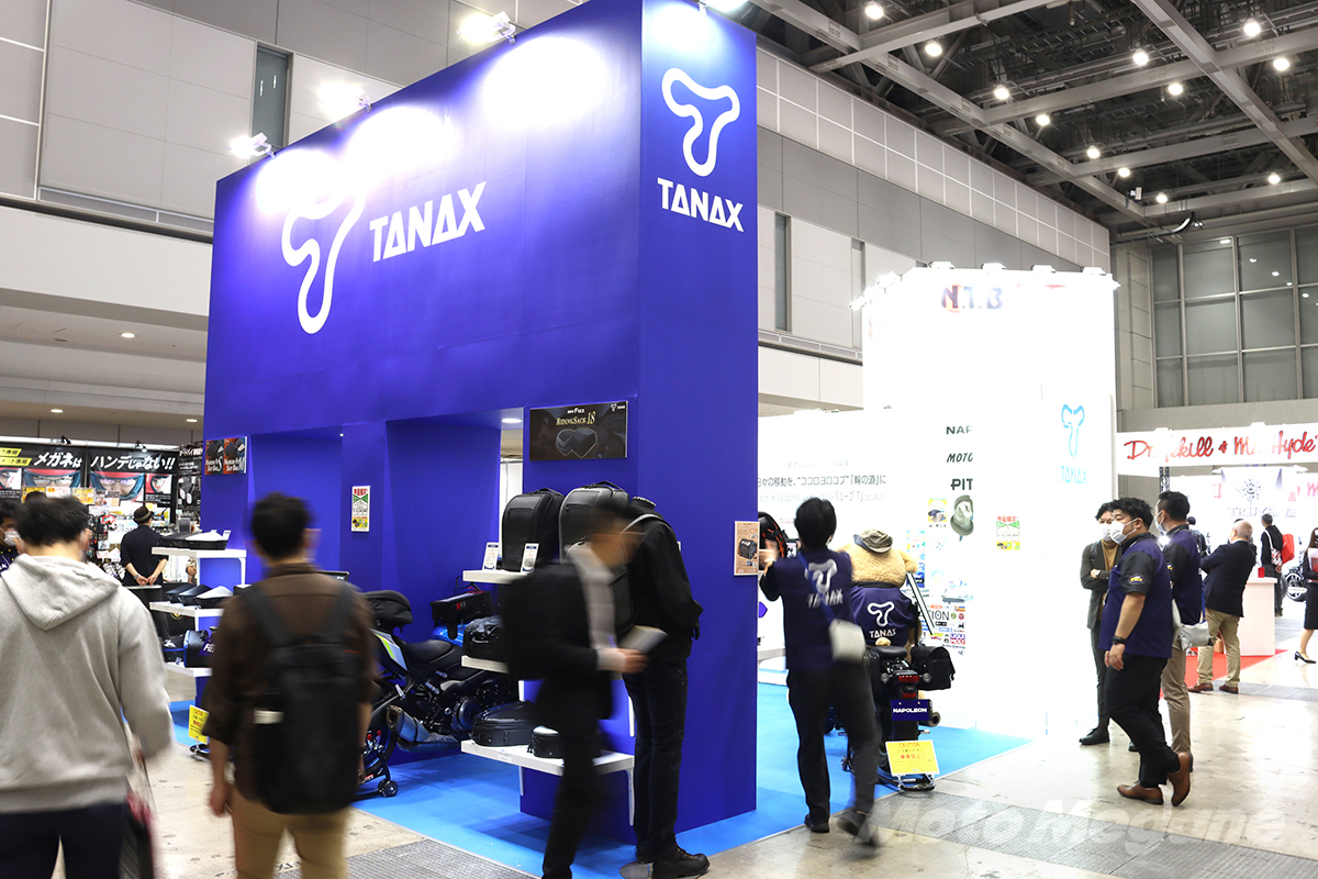 本格的なツーリングシーズンに向けて、新しいデザインのバッグ類や便利なツーリングアイテムを展示し、2023年東京モーターサイクルショーで大きく話題を集めたタナックスブース。