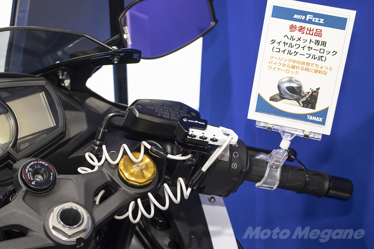 近年の機種はヘルメットホルダーが省略されていたり、使いにくい位置にあることも多いものだが、今回参考出品された「ヘルメット専用ダイヤルワイヤーロック」は使いやすさ最高レベルの新発想のヘルメットホルダーだ。