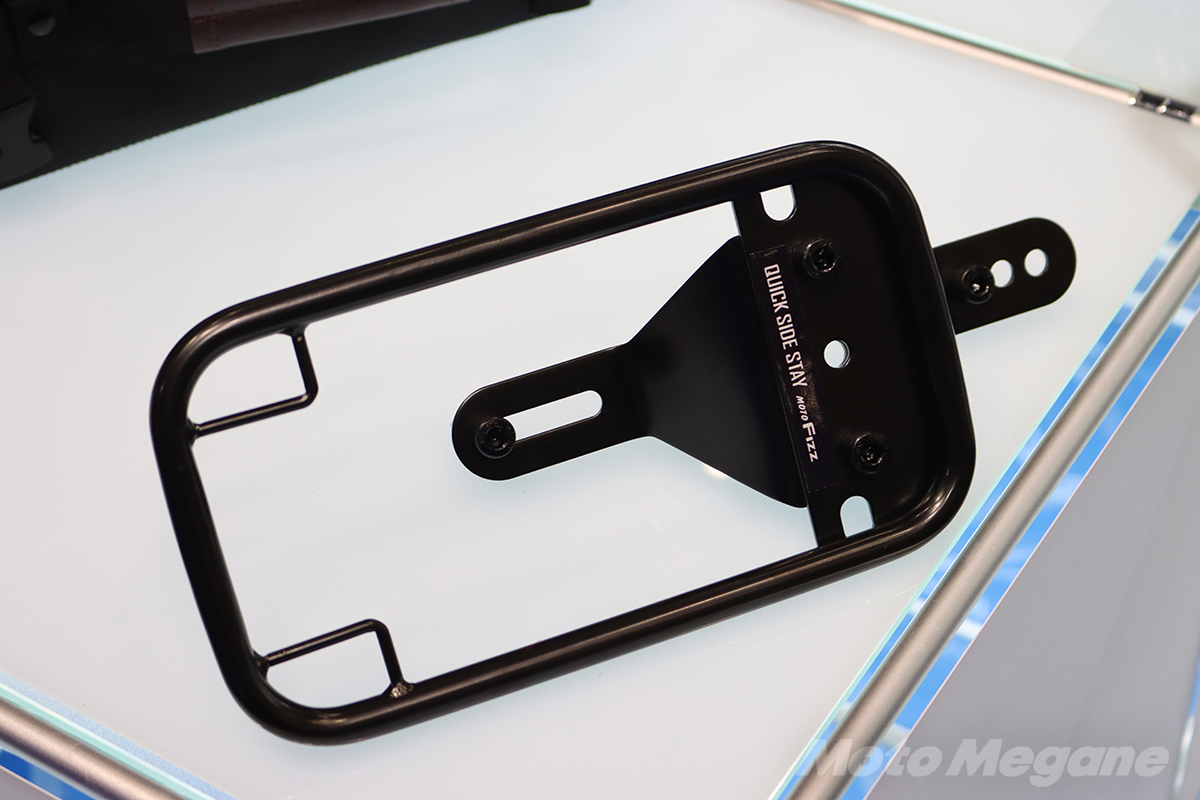 レブル250/500専用のステーにより、バッグを確実かつ、かんたんに脱着できる7月発売予定の新商品。ステーは車体の左右どちらでも取り付けが可能で、2つ購入して両側にマウントさせることもできる。