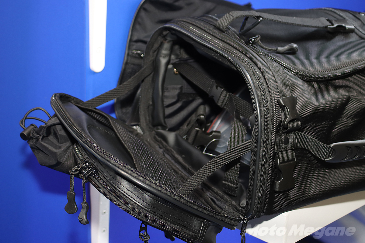 ウィークデーの仕事や通学から休日のツーリングまで、ひとつのバッグでまかなうことができるので、バッグの中を入れ替える手間も無いし、コスト的にも優れるのが特徴となっている。
