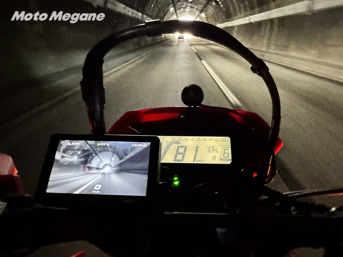 暗いトンネル内でもすぐに周囲の明るさに対応して画面が最適化されるので、明るすぎや暗くて見えないといったこともなく目に優しい。