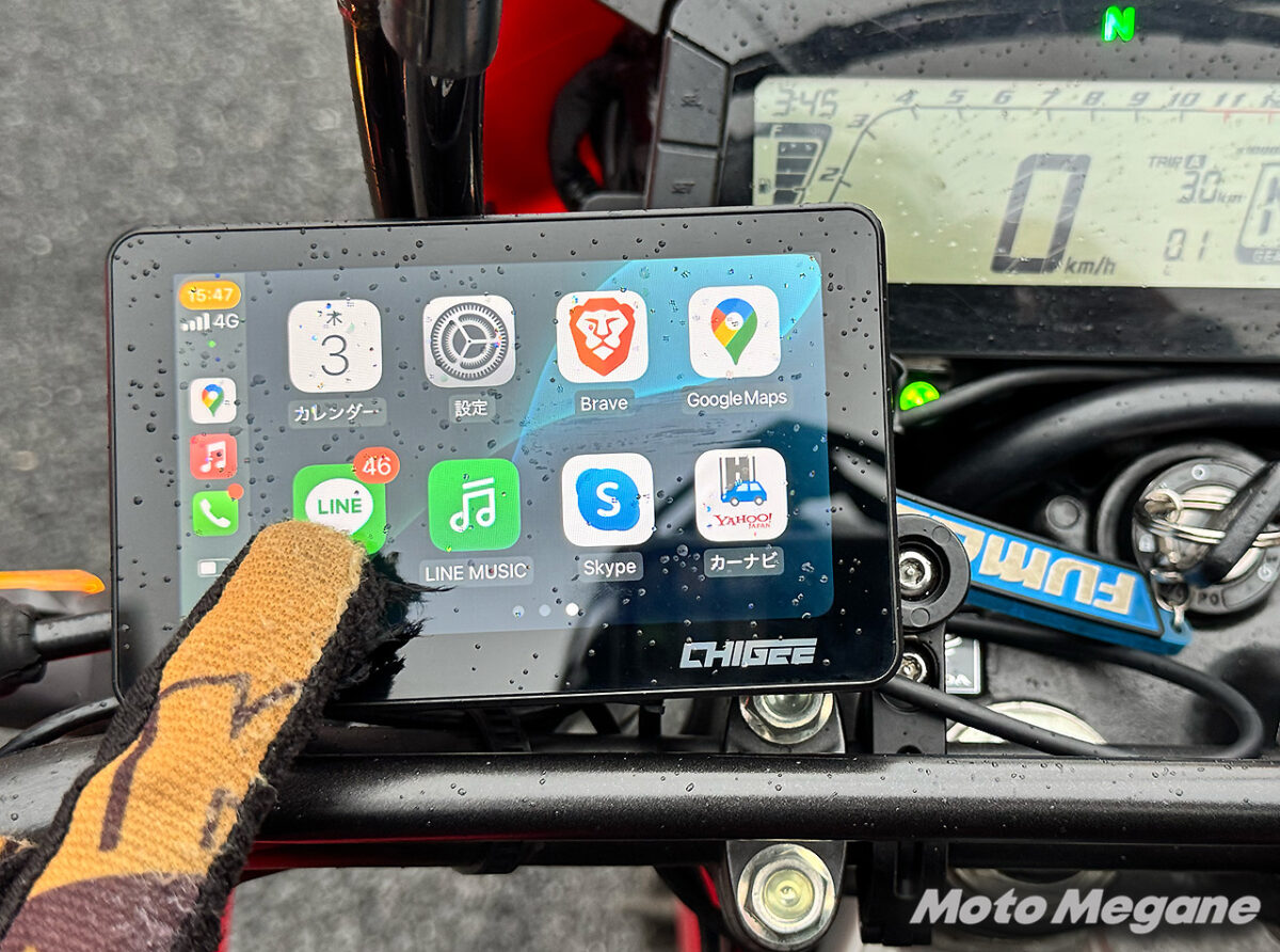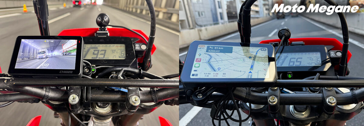 明るく見やすい1200nit高輝度IPS液晶を採用し、ライダーの好みでどんな角度でも走行中において画面が見やすいのがありがたい。