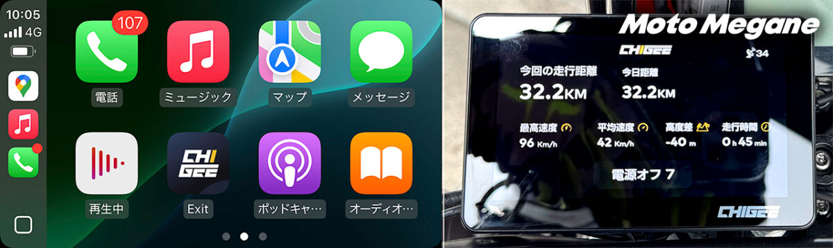 (左)Apple CarPlayなどで接続してスマホアプリを使える (右)走行データ