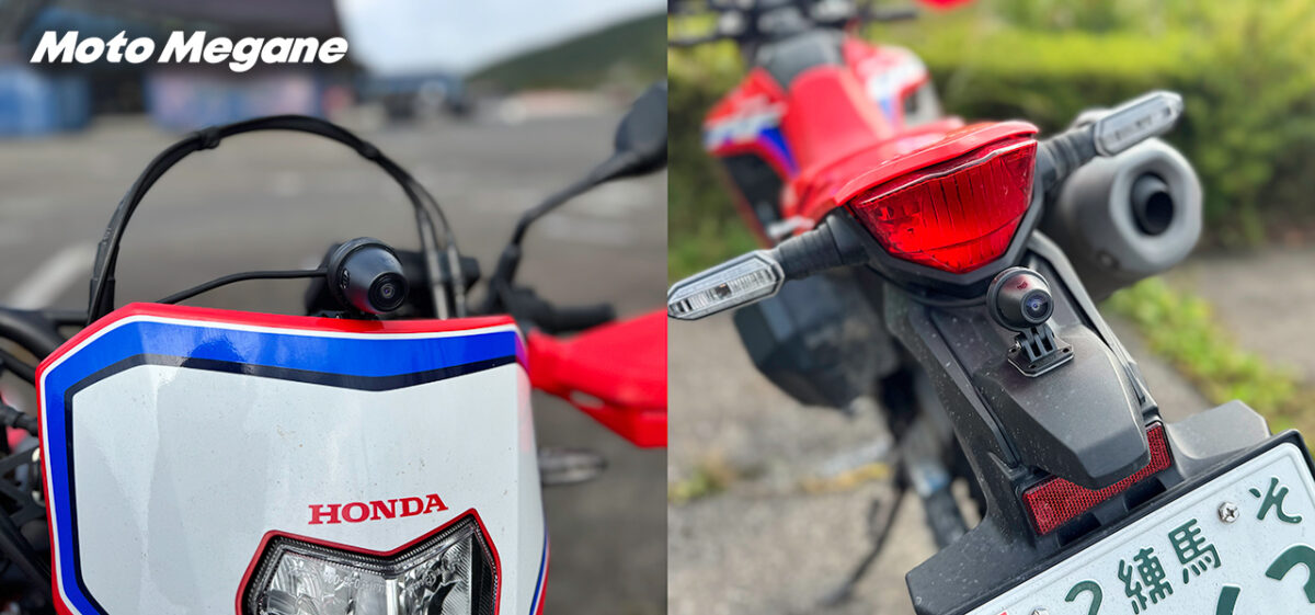 LED信号機に対応し1080P 27.5fps録画が可能な振動補正カメラは、角度をマシンへの設置位置に合わせてフレキシブルに調整可能。(左)フロントカメラ (右)リヤカメラ