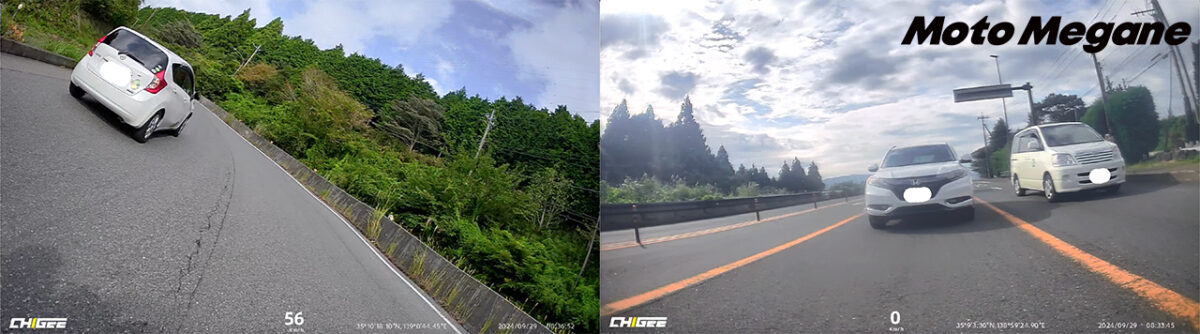 (左)フロントカメラの録画映像 (右)リヤカメラの録画映像
