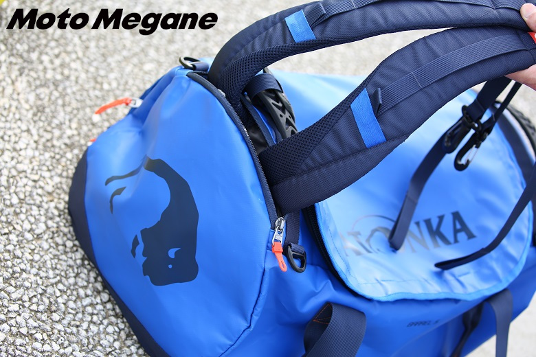 TATONKAはドイツのアウトドアブランドで、その名前はネイティブアメリカンのスー族の言葉で“バイソン”を意味し、猛々しい姿がロゴにも反映されています。そして、このTATONKA製のバレルというバッグですが、皆さんもお気付きだとは思いますがバイク用ではありません基本的には旅行はもちろん、優れた防水性を活かしてマリンスポーツ用エクイップメントの運搬などにも使用できるマルチユースバッグです。