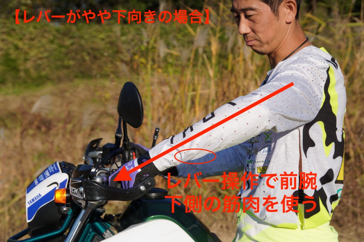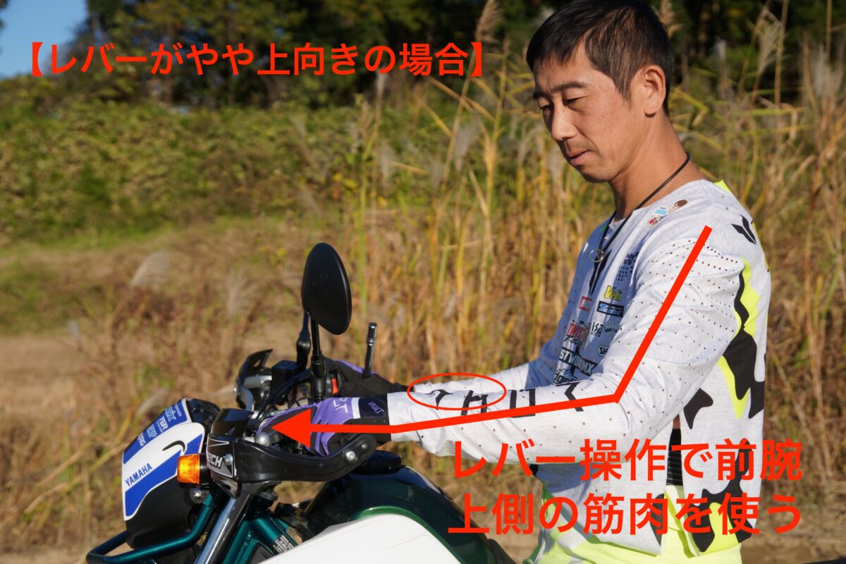 これは、エンデューロレースで長時間走ってレバー操作をしたときに、筋肉がなるべく疲れないようにするためです。