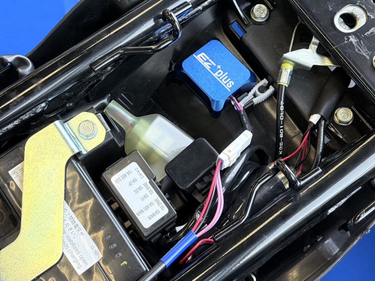 スズキGSX-R125はリヤフレームに「EZ+plus」を設置。各車両毎にスペース効率も考慮した設計で、カプラーオンによる簡単な取り付けを実現している。