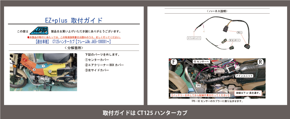「EZ+plus」は排気量250cc以下の市販二輪車を想定して開発され、スーパーカブ110・クロスカブ110、グロム125、ADV150用の販売からスタートし、CT125ハンターカブ、ヤマハシグナス、スズキGSX-R125などラインナップを増やしてきた。今後も原付二種や軽二輪のレジャーバイクやスクーターをメインとしつつ適合車種を追加していく予定とのこと。