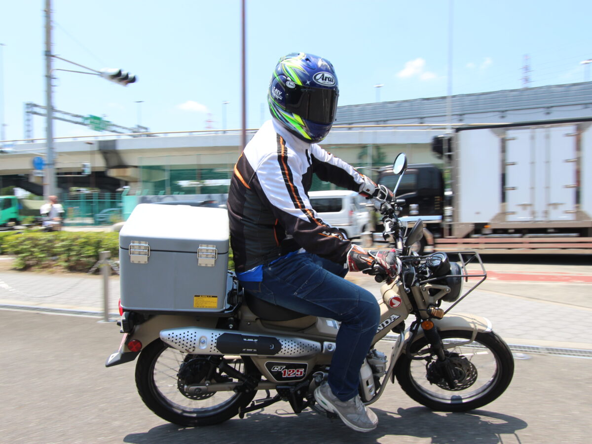 まずT-REVmini装着車に試乗。テスト車両はCT125ハンターカブ(JA55)だ。