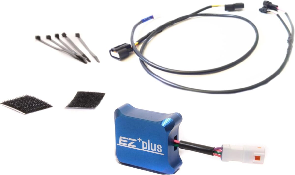 このEZ+plusは、車体のO2センサー(酸素濃度センサー)に本体を接続することで電気的な信号を送り、燃料を適正に補正してパワーとトルクを上げるチューニングパーツである。