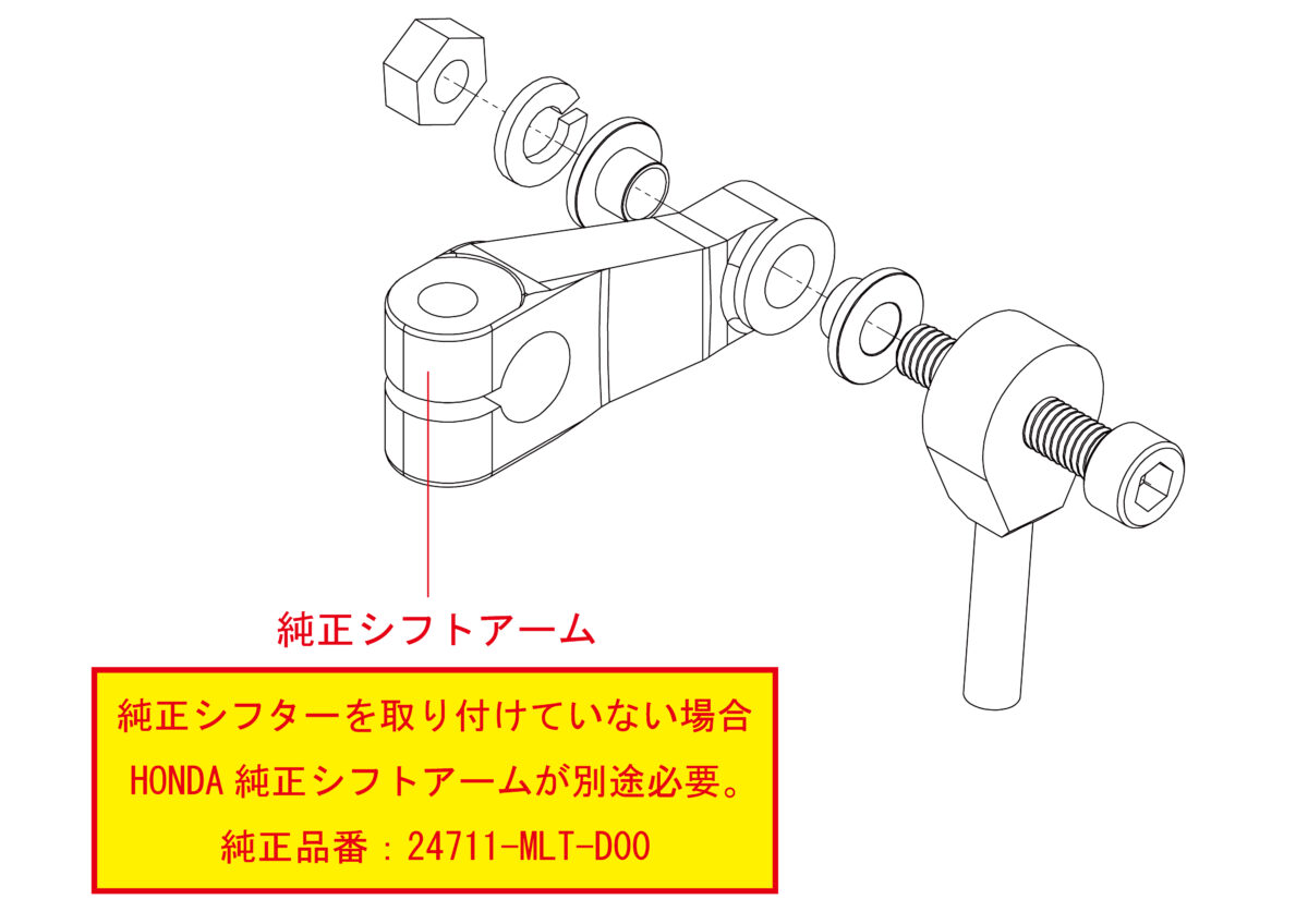 また、純正ステップにEZ-SHiFTERスイッチType-Rを取り付ける場合、通常の正ネジ/逆ネジのシフトロッドから、正ネジ/正ネジのシフトロッド130mm(別途)への変更も必要となる。