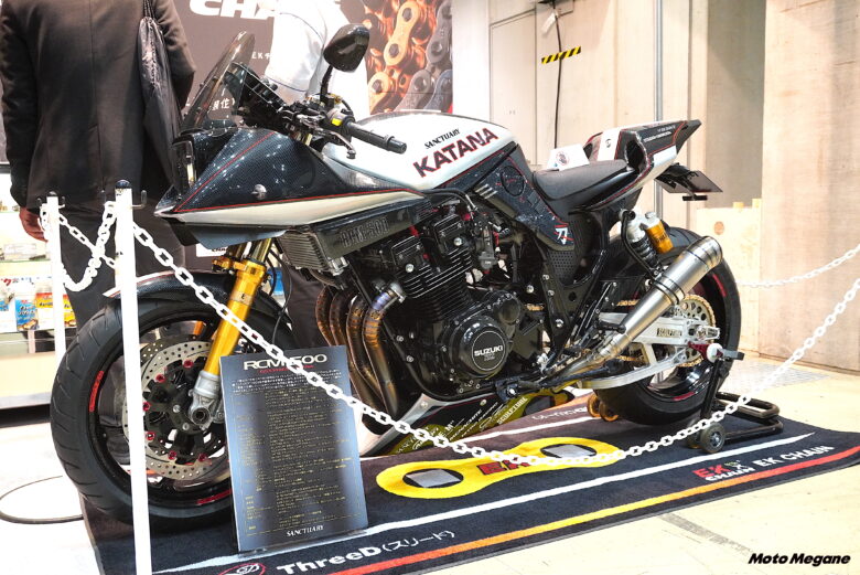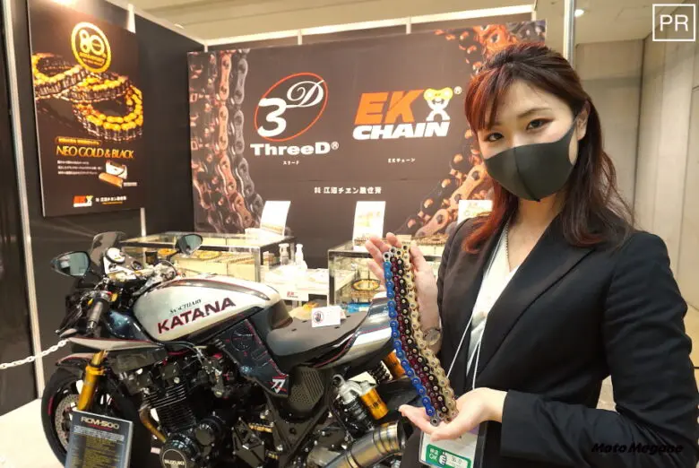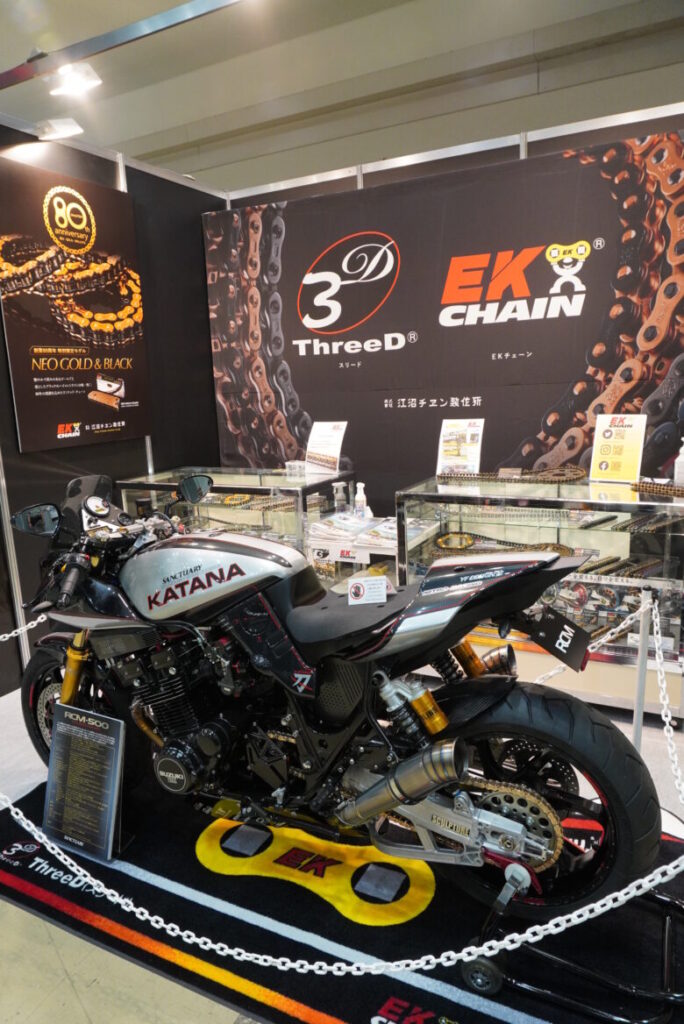 趣味性の高まる二輪市場へ向けて、消耗品ではなくチェーンでカスタムする楽しさを訴求している。事実、走りを追求したコンプリートカスタムマシン・RCMを製作しているACサンクチュアリーでは江沼チヱン製作所の製品を採用。美しくカスタムされたマシンの足回りを、強く美しい江沼チヱン製作所の製品が彩りを添えている。