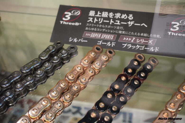 単に消耗部品では終わらず、カスタムパーツの一つとして選びたい高品質でデザイン性の高いドライブチェーンをラインナップしている。