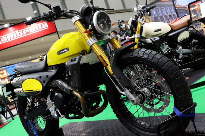 スクランブラースタイルのキャバレロをベースに、ストロークが長い前後サスペンションやアルミ製スイングアームなどを換装し、オフロード性能を高めたのがラリー500。2022年初登場のエクスプローラー500はその発展形で、荷台面がシートと同じ高さに合わせられたリヤキャリヤ、小ぶりなタンクバッグ、パイプ製のエンジンガードを標準装備することで、さらに冒険向きの仕様に仕上げてある。 他のモデルと共通化された449cc水冷単気筒エンジンは、最高出力38.5馬力を発揮。前後サスはプリロードに加えて減衰力の調整機構も備える。車体色は専用のツートーン。2022年5月に生産開始予定で、すでに予約受付が開始されている。