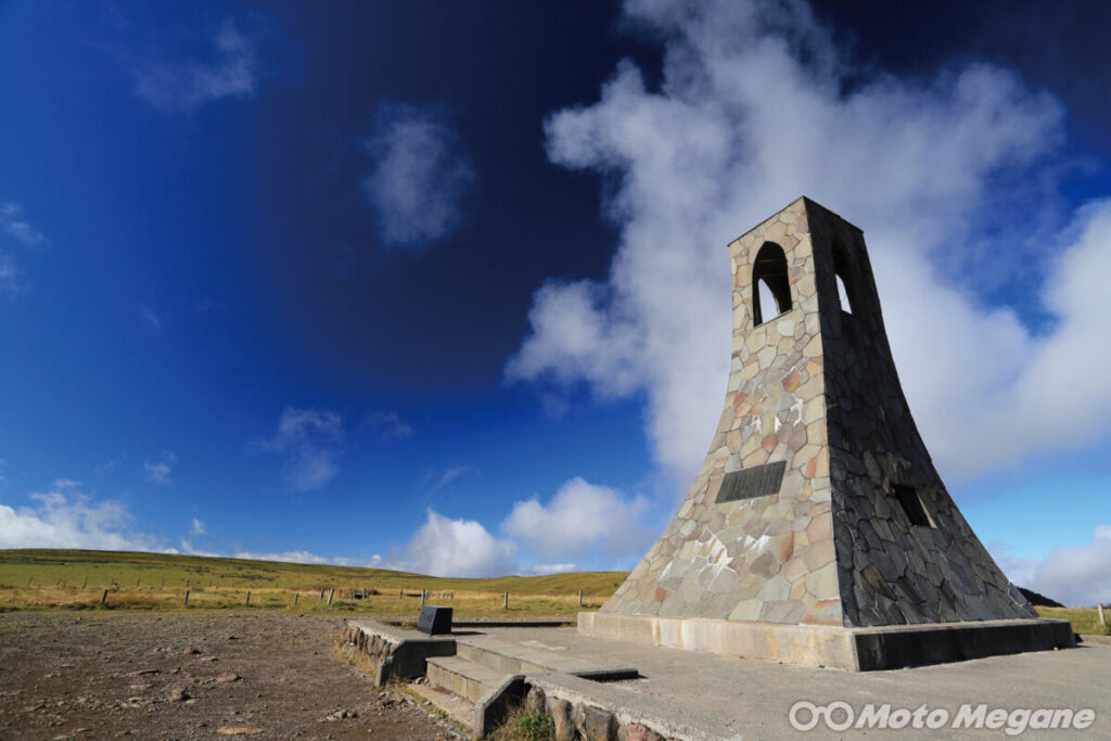 美ヶ原高原は、主峰王ヶ頭(2034m)を中心とした標高約2000mの溶岩台地だ。富士山、八ヶ岳、北アルプスなど360度の大パノラマが楽しめ、夏には広大な草原にニッコウキスゲやヤナギランなど二百種類以上もの亜高山植物が見られる。高原の中央には、霧のときに鐘を鳴らして登山者の安全を守るシンボルタワー「美しの塔」が、東の端には約13万平方kmの広大な敷地に様々な野外彫刻を展示している美ヶ原高原美術館がある。ビーナスラインツーリングのゴールとして最高のスポットだ。