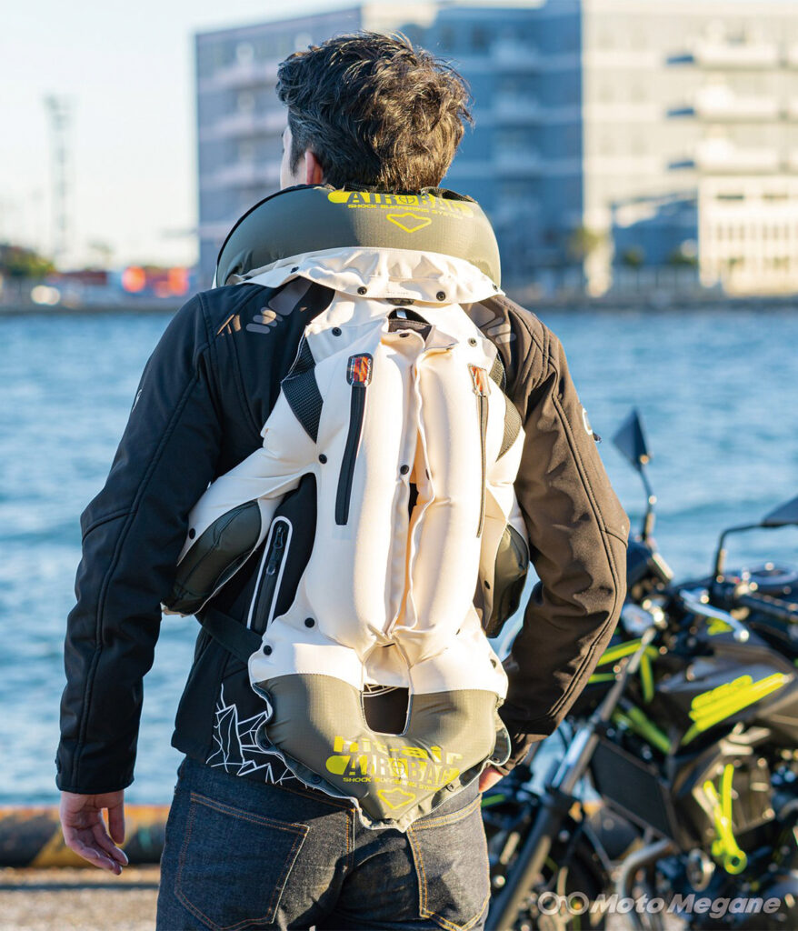 一体型エアバッグハーネスのスタンダードモデル。エアバッグ気室各所を大きくし、CO2ガスを最大限に活用。作動・展開の際に気室各所の固定収納ボタンが瞬時に外れ気室が大きく膨らむようになっている。ベストタイプなので夏に着用しても暑苦しくないのが嬉しい。ウェストアジャストベルトでサイズ調節が可能だ。