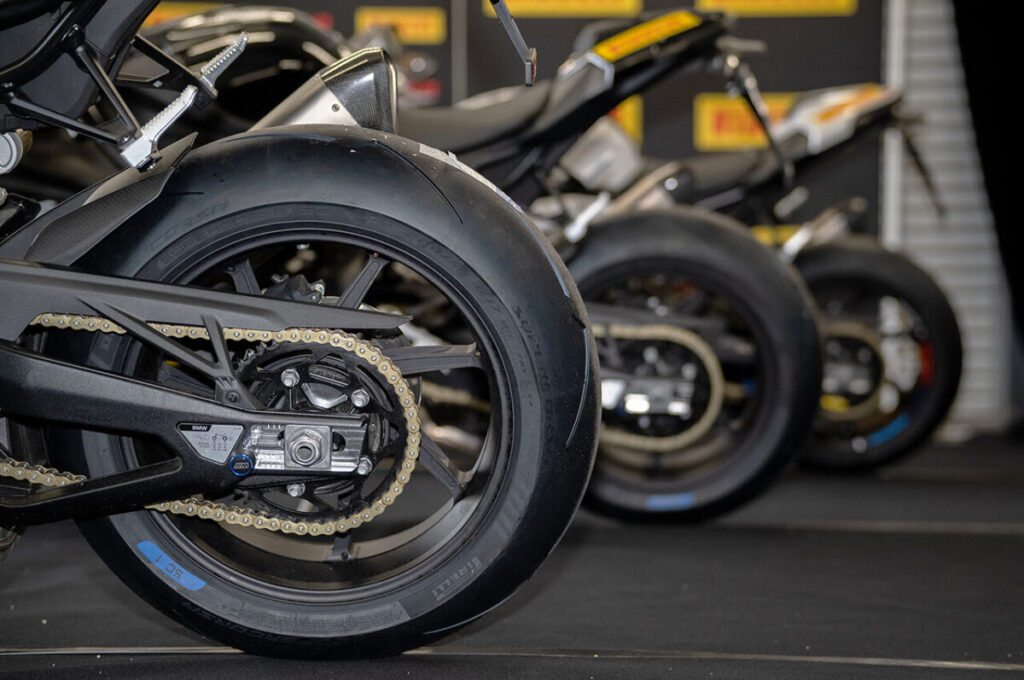 ピレリは2023年、WSBK参戦20年目を迎えます。信じられないほどたくさんの市販スポーツバイクが、そしてレベルの異なるライダーたちがピレリタイヤを履き、その声をフィードバックしながらスポーツタイヤ開発を続けています。実はこんな開発フィロソフィーを持つタイヤは他にありません。同じカテゴリーでもエンジン形式や重量などが変わればタイヤに求めらるものは変わって行きます。WSBKはもちろんですがWSSでも、いまや2気筒、3気筒、4気筒など、気筒数ではなくスロットルボディにリストリクターなどを装着するなどして、パワーコントロールによるクラスレギュレーションに変更されています。600cc以下の4気筒だけのレギュレーション時代とはタイヤの作りが随分異なるそうです。