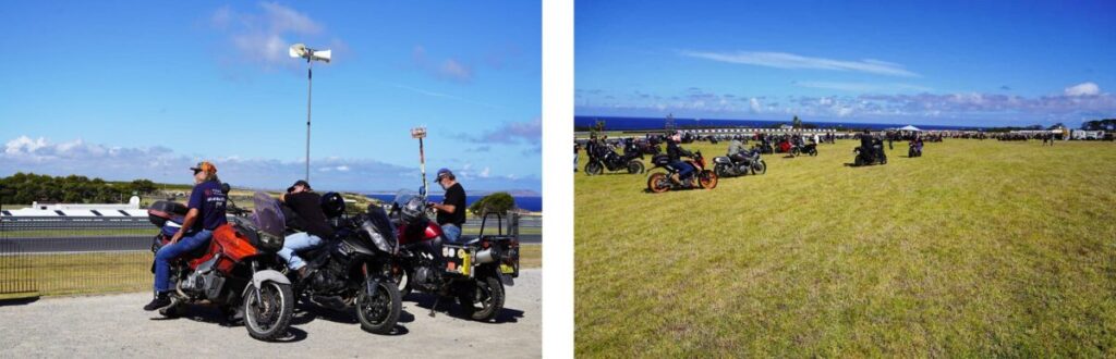 フィリップアイランドは観客席がなく観戦エリアはすべて芝生。コースを隔てる柵もとても簡易的な作りで、来ている方の年齢層は日本より高め。芝生の上をバイクが自由に走り回り、とにかくのんびりとした雰囲気に包まれています。