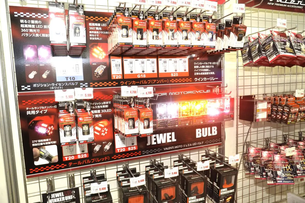 国内最大規模のバイク、用品、パーツの見本市である「第51回東京モーターサイクルショー」が東京ビッグサイトで、3月22日〜24日の3日間開催された。出展社数は昨年より7増えて173となり、会場には国内外のバイクメーカーのほか、ヘルメットやウエアなどバイク用のギア、パーツなどが展示され、3日間合計で11万3905人が来場した。その会場内には数々の有名バーツメーカーブースが出展したが、ひときわ輝きを放ったのがValenti Moto(ヴァレンティモト)のブースだ。4輪カスタムではお馴染みだが、最近は2輪用パーツも充実。LEDを採用したヘッドライトバルブやテールランプ、ウインカーのデモ機を用意して、その輝きが体感できたり、オリジナルのケミカル類にも注目が集まっていた。