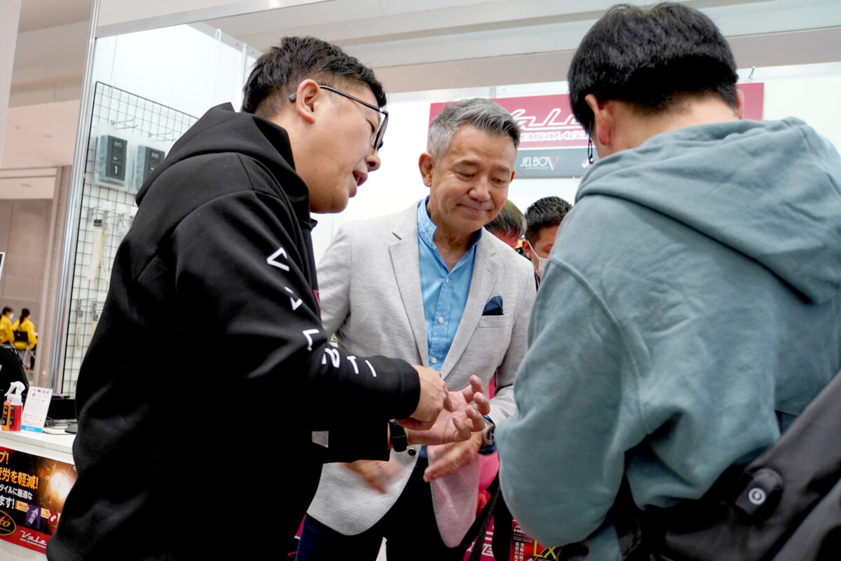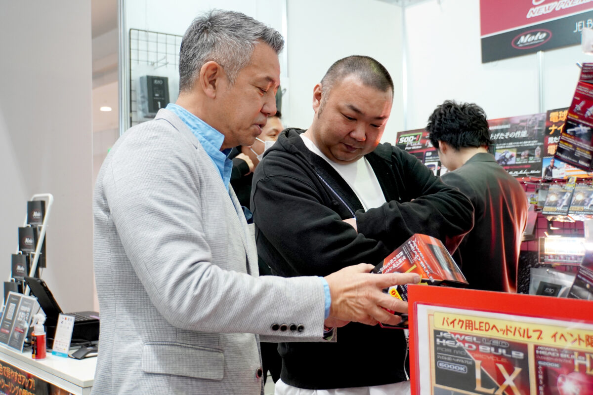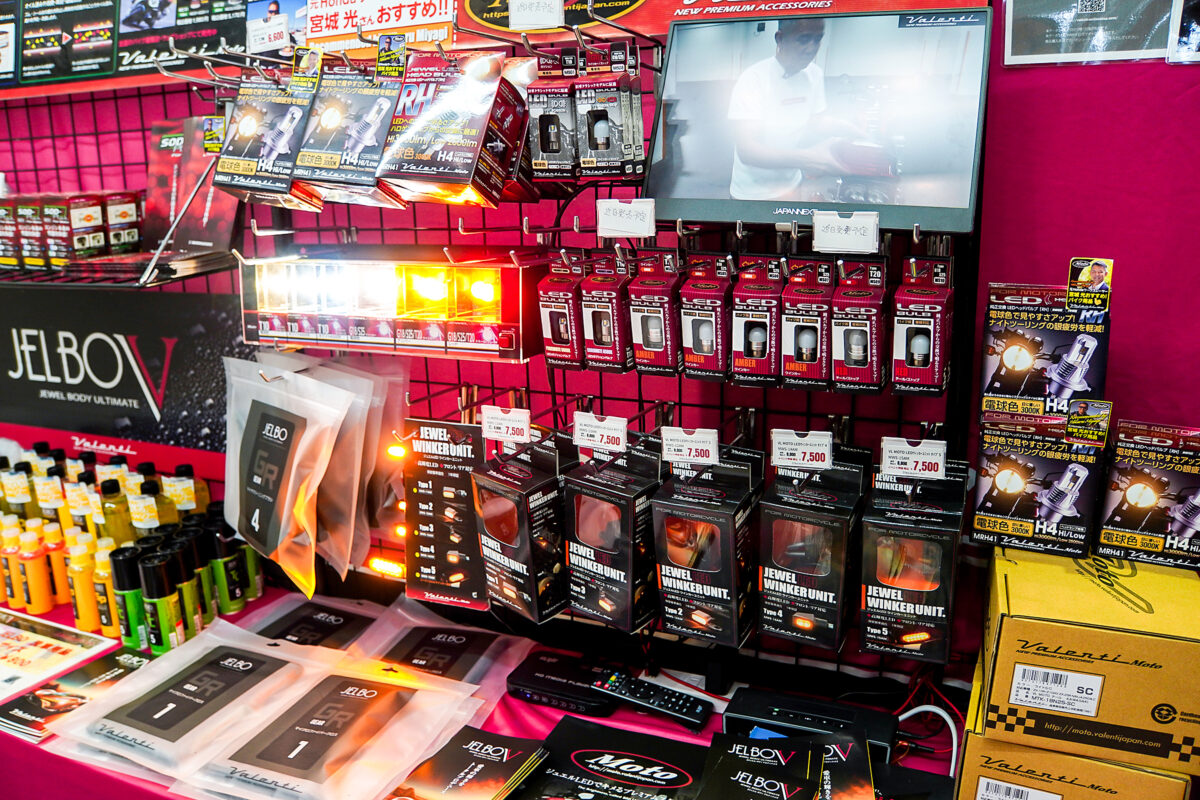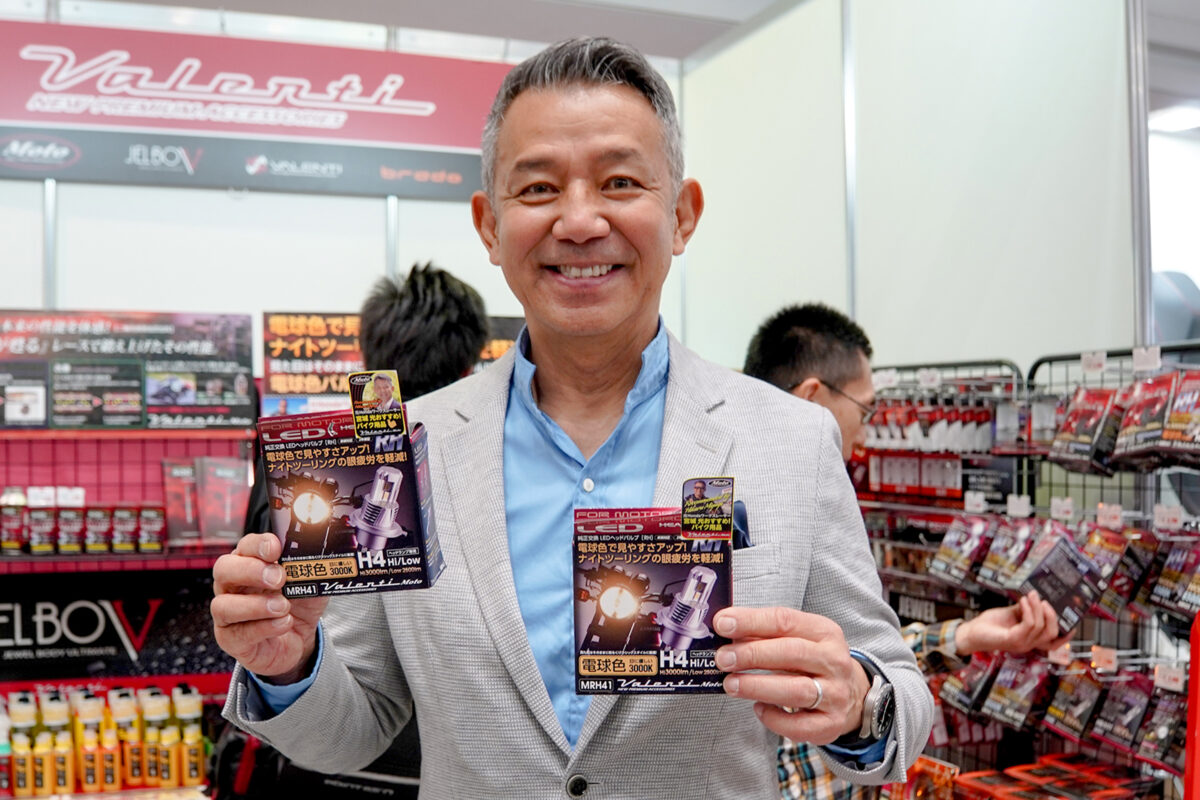 MotoGPの解説などでも知られている、元HONDAワークスレーサーの宮城 光さんは、ヴァレンティモトとアドバイザリー契約を結んでいる。2輪・4輪の対しての造詣が深く、個人でもさまざまなブランドのバイクを所有することで知られているが「私が所有するバイクにもヴァレンティモトのLEDバルブを使っています」と笑顔で話す。それだけ信頼がおける製品ということであろう。東京モーターサイクルショー会場のヴァレンティモトブースに立ち寄った宮城さんは、スタッフと一緒にお客さんの愛車の話を聞き、自身の体験談を交えながら最適なLEDバルブを見つけ出すなど、積極的に販売をサポートしていた。