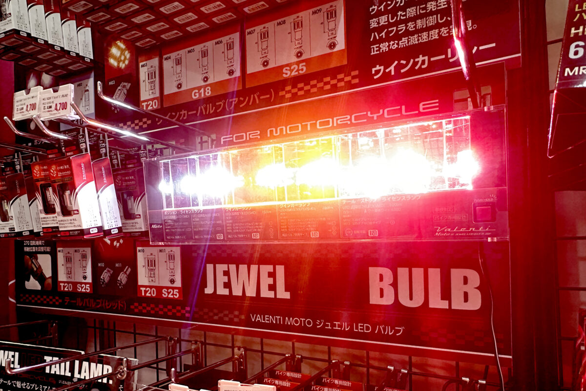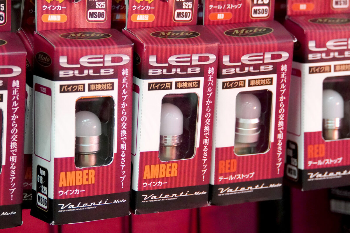 ヴァレンティモトの人気商品のひとつが、従来のバルブ形状に酷似したLEDバルブだ。レンズの外から内部が透けて見える絶版車のウインカーなどでもイメージを崩しにくい。またカバーによって光が散るので見え方も自然。明るさや点滅時のキレの良さはLEDそのものなので、気軽にアップデートできる。