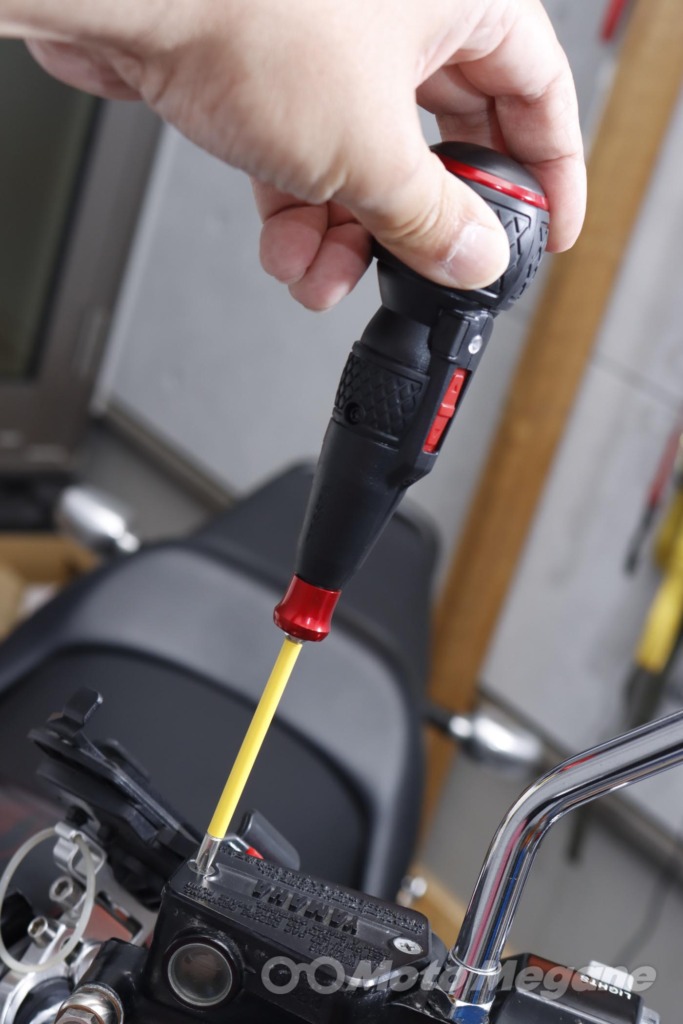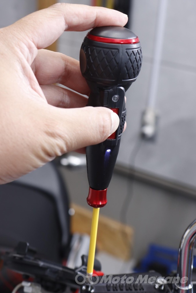 バイクの車体にはプラス、マイナス、様々なサイズの六角、ヘックス、トルクスなどいろいろなボルトが使われているが、それらに対して電ドラボールを使うことが可能だ。