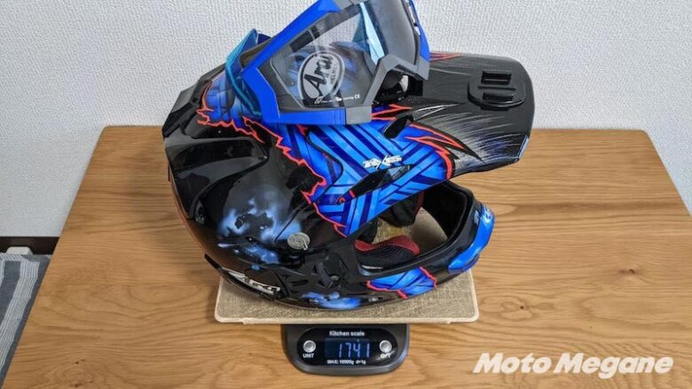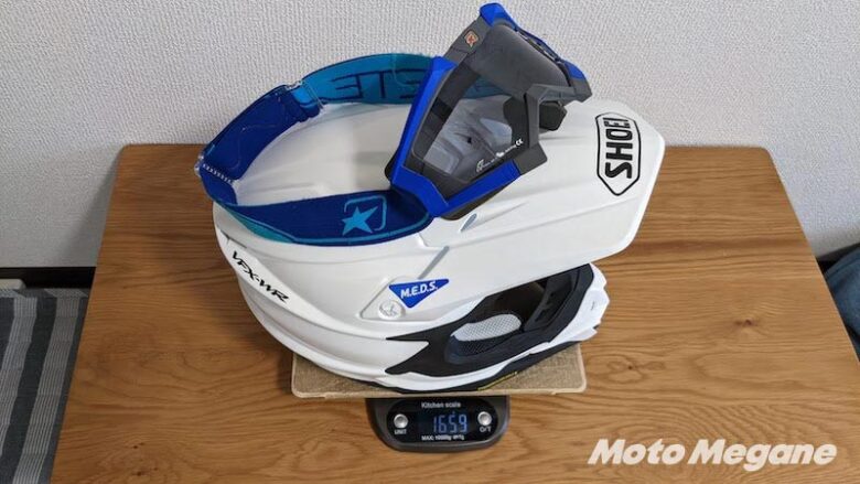 ゴーグル込みだとArai 1,741g、SHOEI 1,653gという結果に。