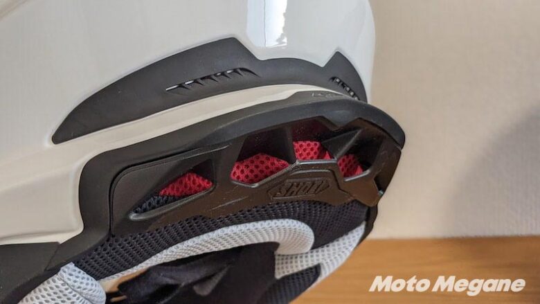Araiが帽体の外側の丸みで衝撃を逃すのに対し、SHOEIは帽体の内側にM.E.D.Sという独自ライナーを仕込んでおり、衝撃を逃しています。