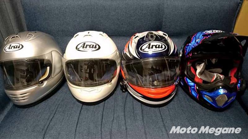 今まで4つのAraiヘルメットを使用し、海外5000km含む合計10万km以上走っています。