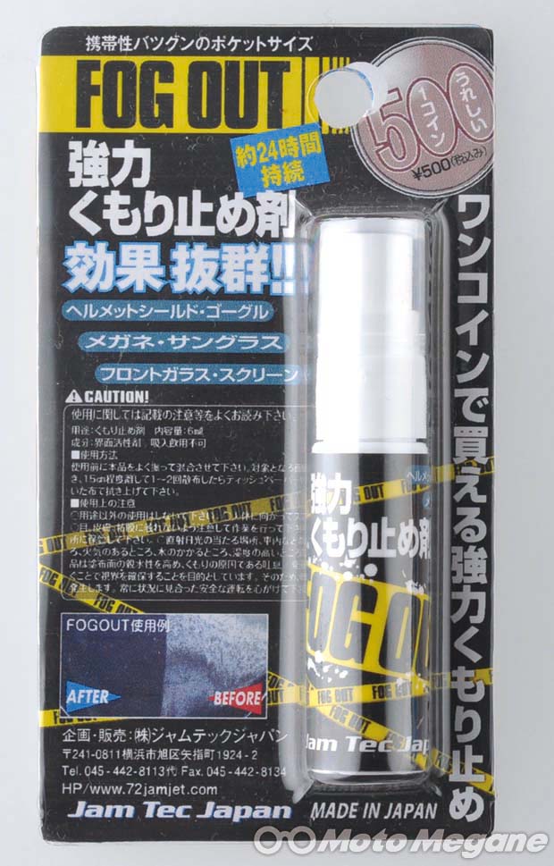 ジェットヘルメットやシールドを展開している72JAMから強力くもり止め剤が発売されている。界面活性剤の働きで、シールドやメガネにシュッとひと吹きするだけでくもりを防いでくれるというアイテムだ。冬の時期、またマスク必須の今だからこそ役に立つアイテム。しかもワンコインというのも嬉しい限りだ。