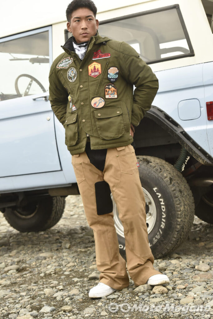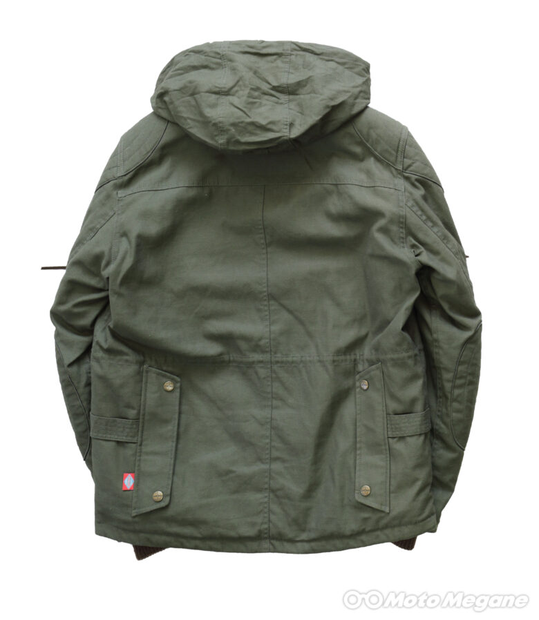 M-65のディティールにJAM’S GOLDらしいエッセンスを加えた防寒ジャケット。素材は柔らかめなコットン素材を使用し着心地を重視しながら防水仕様としている。袖はダブルカウスで、シェルの縫製と裏地の縫製を変えることで冷気の染み入りをブロックするという繊細な工夫が施されている。肩、肘、脊髄ソフトパッドが標準装備されているのも特徴だ。