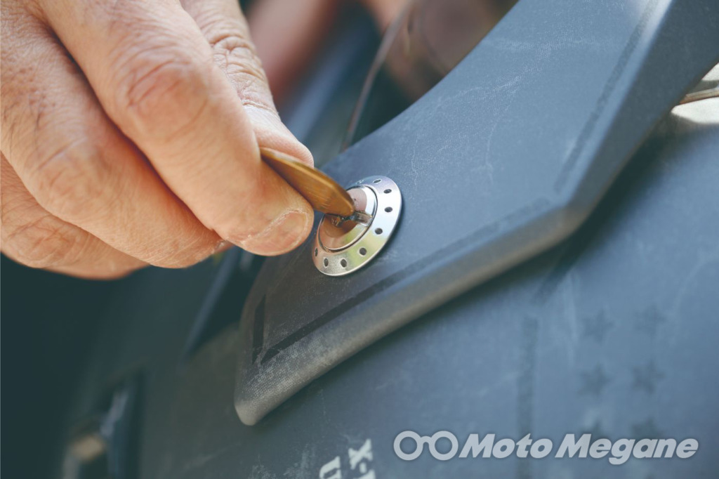 ドライバーが手元になくてもコイン1枚あればバイザーの脱着が可能。